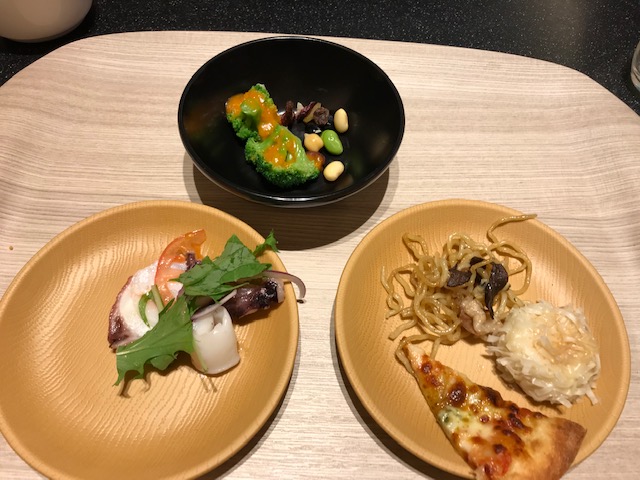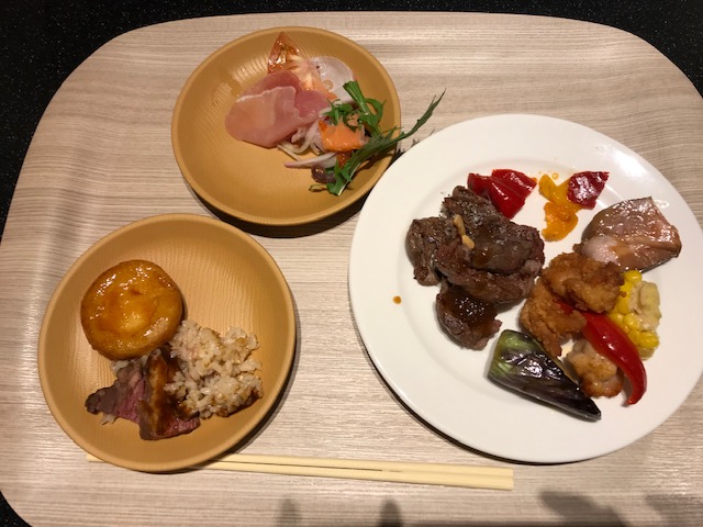 サーモンのマリネやポークステーキ、生ハム、タコのサラダ等あり、ちょっとずつ取って丁度全種類食べきれるくらいの品数で、私にはちょうどよかったです。