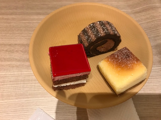 デザートの種類も豊富で、抹茶わらび餅やミニケーキ、ゼリーやアイス等がありました。