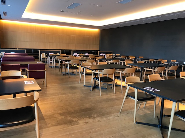 朝食も夜のビュッフェ会場と同じ場所です。夜は西日が差すためかブラインドゥが閉じていて薄暗かったのですが、朝は明るく開放的でした。