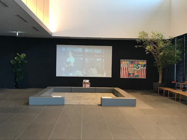入口入ってすぐ右手にキッズコーナーがあり、大きなプロジェクターでアニメが見れます。